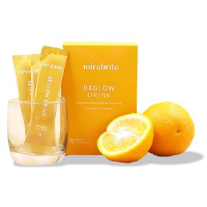Enrich with Pineapple Extract, Pomegranate Enzyme, Vit. C & Yeast (GSH) and Acherola Cherry, Mirabrite Be Glow Drink helps nourished skin from the inside help increases Gluthatione Level and Collagen production, retains skin moisture and hydration and helps brighten the skin.