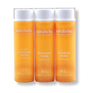 Healthy and clean skin with Mirabrite Triple Cleansing Series. Skincare series consist of 3 in 1 Cleansing Toner, Cleansing Lotion and Refreshing Toner with Niacinamide, Galactomyces FF dan Gluconolactone helps brighten the skin, fasten skin regeneration, controlled sebum production and strengthen skin barrier.